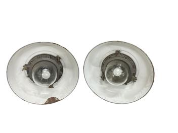 Lot 1059 , A pair of GEC grey enamel pendant ceiling lights, diameter 45cm, height 46cm