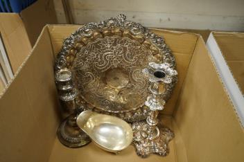 Lot 1615 , A pair of George III Old Sheffield plate candlesticks Mappin & Webb tea service