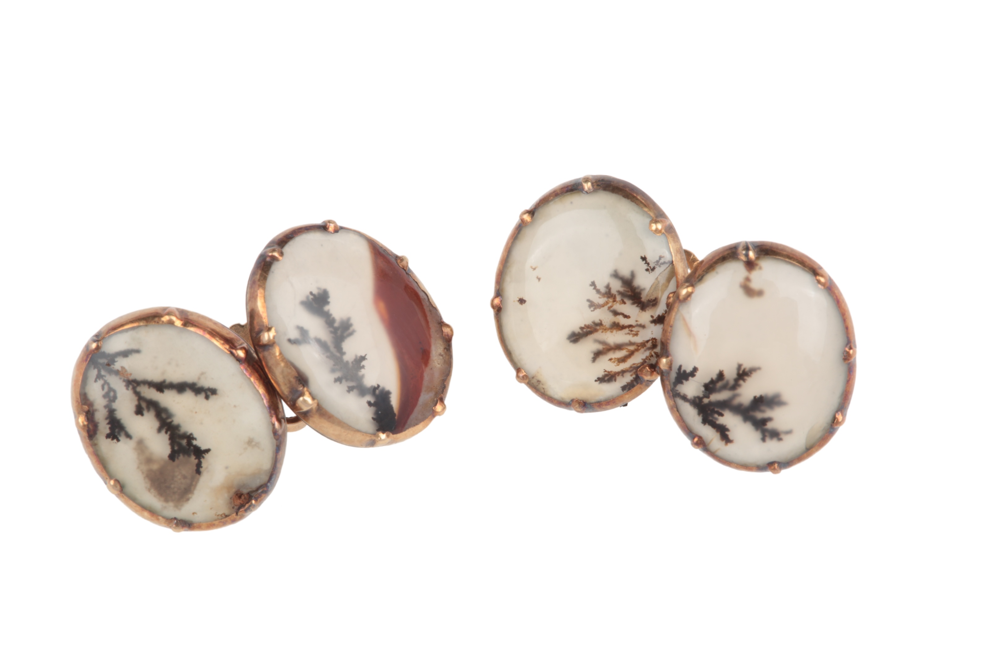 Lot 538 , A pair of George III moss agate cufflinks, early 19th century