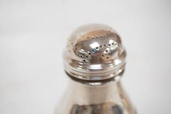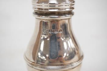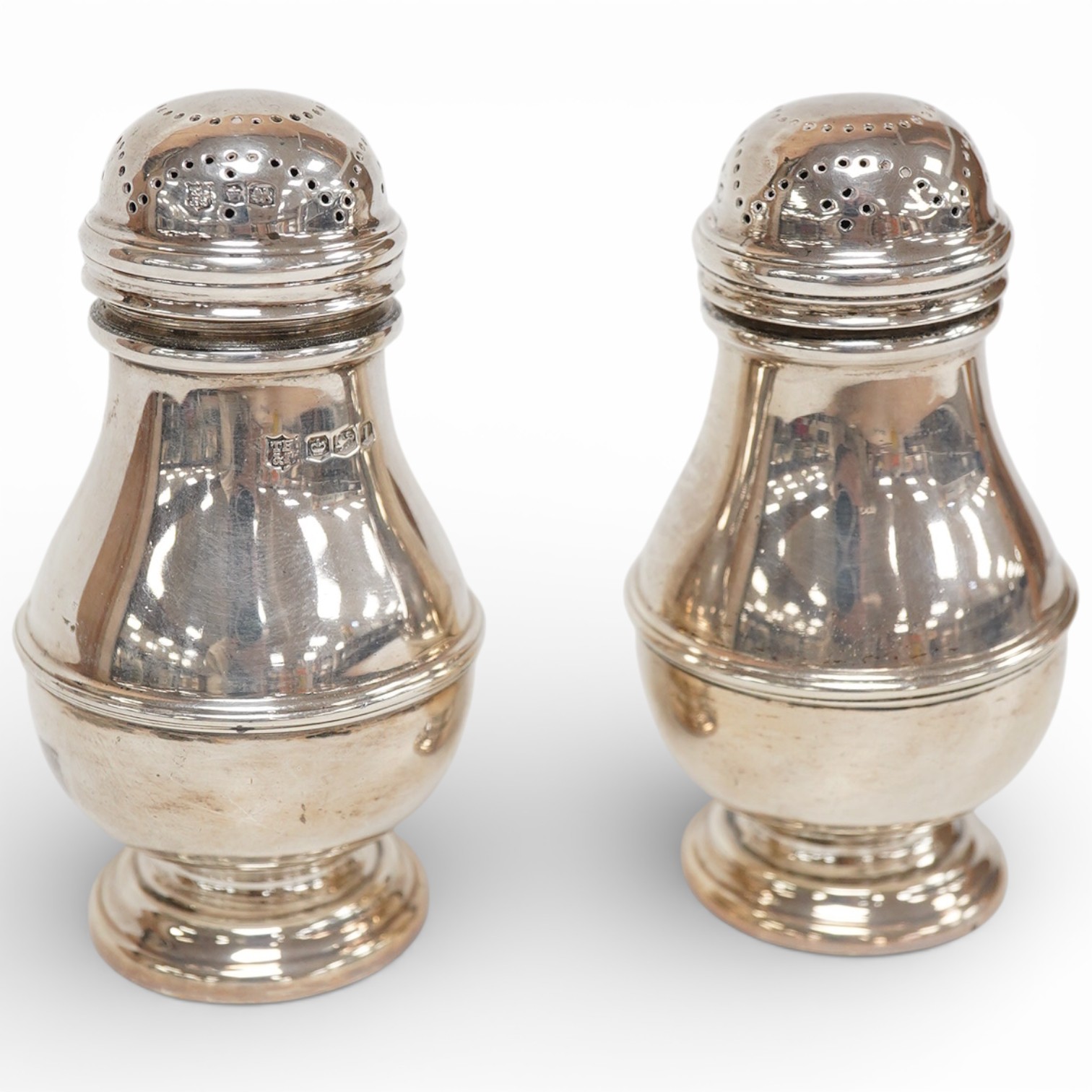 Lot 1014 , A pair of George V silver bun pepperettes, Thomas Bradbury & Sons, Sheffield, 1928, 9cm.