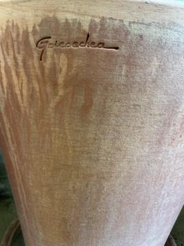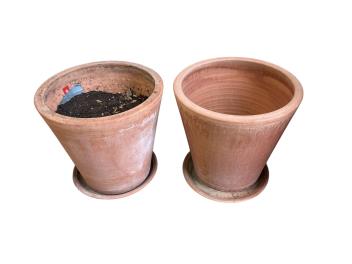 A pair of Goicoechea circular pottery planters with tray bases, diameter 39cm, height 38cm