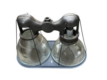 Lot 1060 , A pair of Holophane double industrial factory lights, width 64cm, height 42cm
