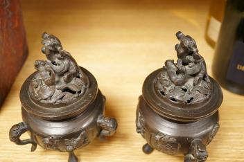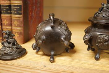 Lot 472 , A pair of Japanese bronze koros raised on tripod feet, 19th century, 14cm high