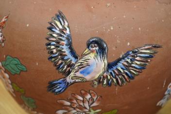 Lot 330 , A pair of Japanese enamelled terracotta jars, c.1900, 26cm high. Condition - fair to good