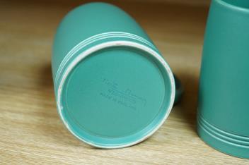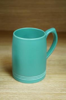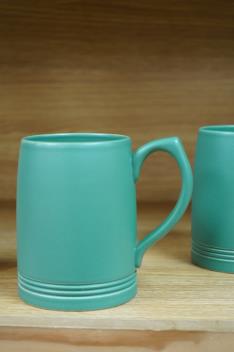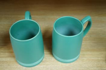A pair of Keith Murray for Wedgwood green monochrome tankards, 12cm high