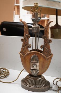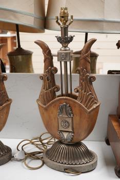 Lot 1570 , A pair of Maitland-Smith lyre shaped tablelamps