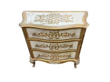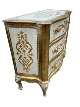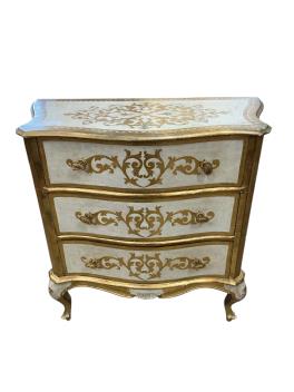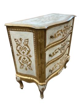 Lot 2076 , A pair of Northern Italian parcelgilt serpentine three drawer bedside chests, width 69cm, depth 38cm, height 78cm