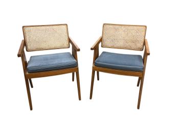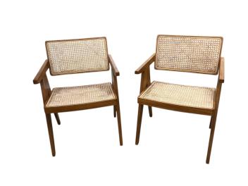 Lot 3365 , A pair of Pierre Jeanneret style caned teak armchairs, width 58cm, depth 55cm, height 79cm