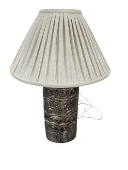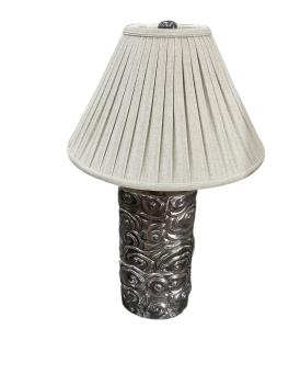 Lot 1079 , A pair of Robert Kuo Collection McGuire repousse table lamps with quilted shades, height 78cm