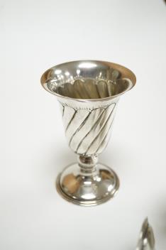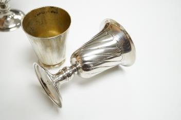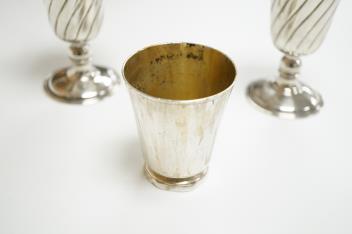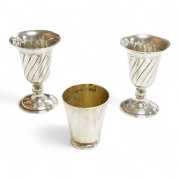 A pair of Turkish? 900 standard white metal goblets, 11.1cm, together with an 800 standard small beaker, 7oz.