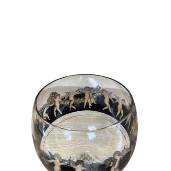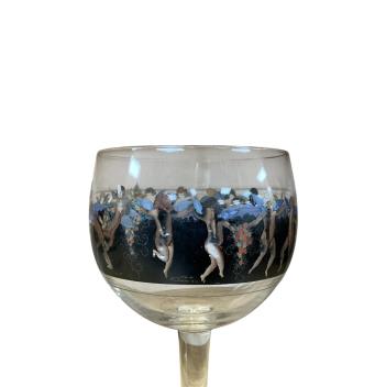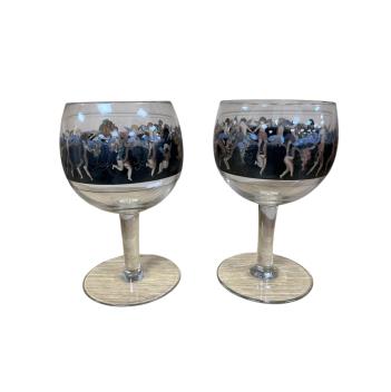 Lot 432 , A pair of Vertri Della Arte cocktail glasses, bowls printed and enamelled in colours, signed, 19cm