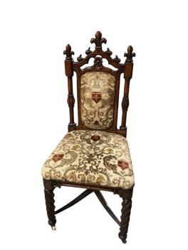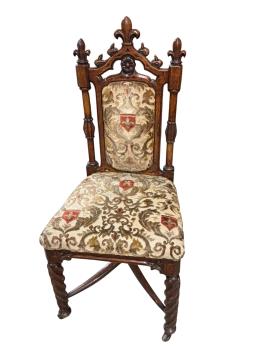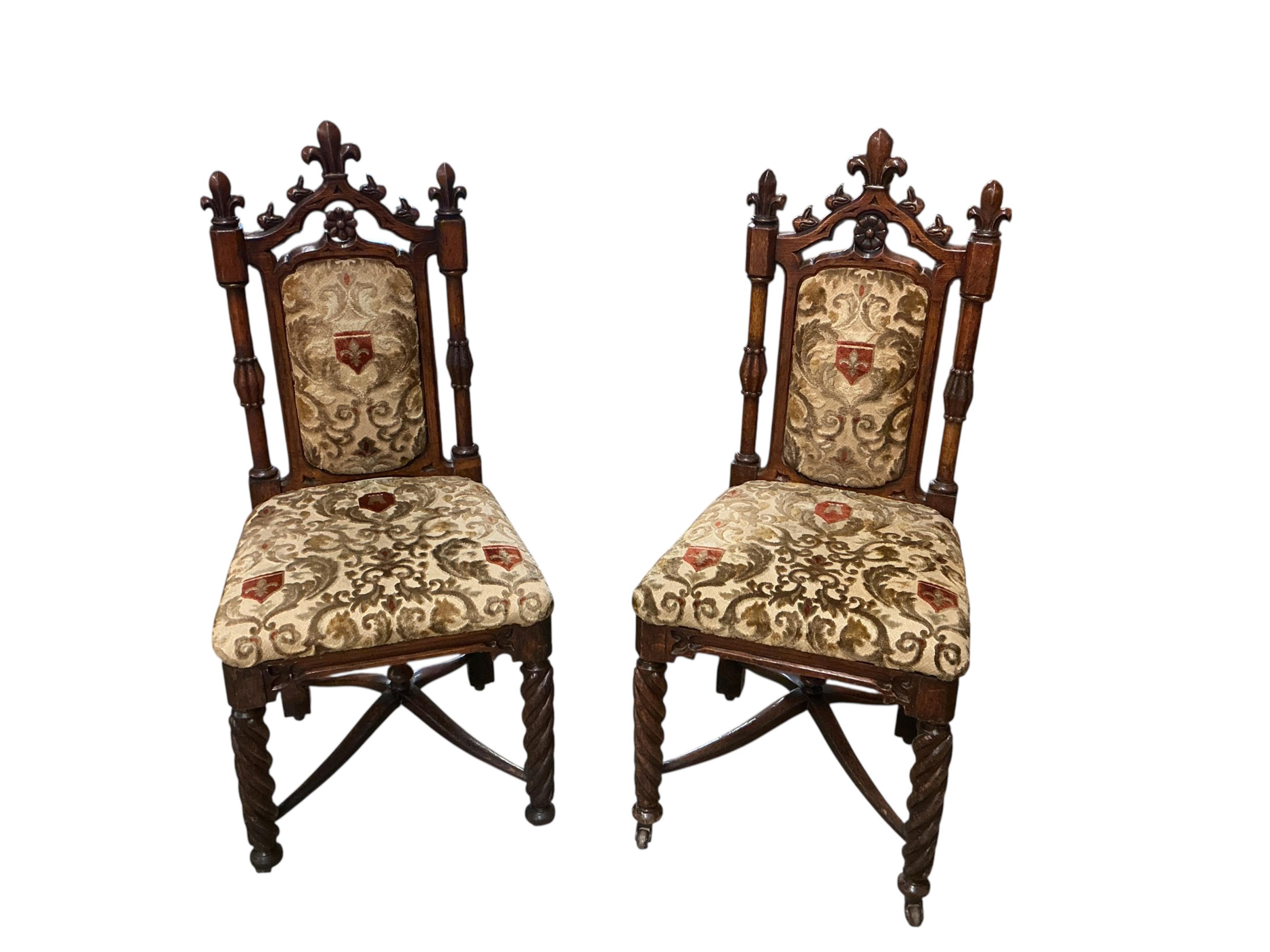 Lot 1328 , A pair of Victorian Gothic Revival carved oak side chairs, 104cm high.