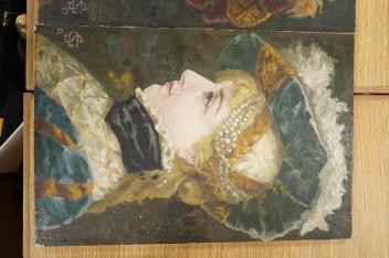 Lot 429 , A pair of Victorian Minton tiles painted with female portraits in profile, monogrammed SG and dated ‘82, 46 x 30cm