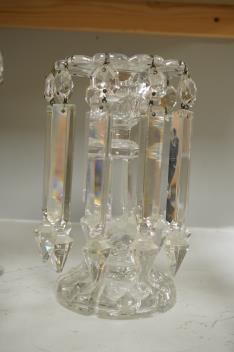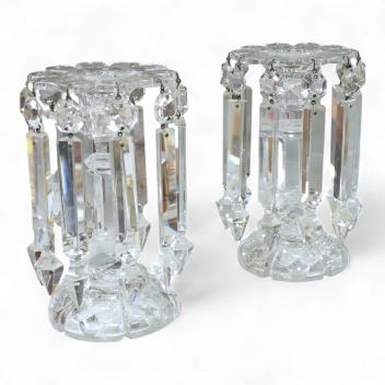 Lot 1515 , A pair of Victorian clear glass table lustres with drops, 20cm high