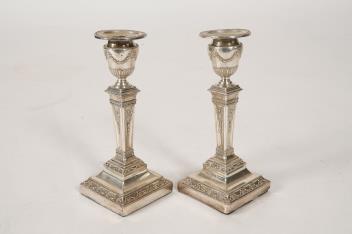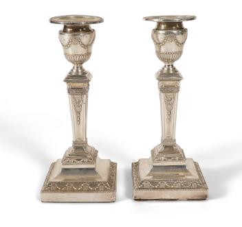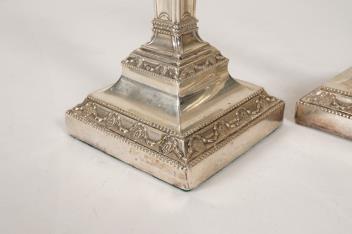 Lot 32 , A pair of Victorian silver candlesticks, with fixed sconces, by Henry Wilkinson & Co