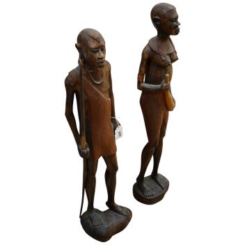 A pair of West African tribal figural carvings, 92cm