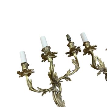 Lot 1270 , A pair of brass Louis XV style three branch wall sconces, 51cm high