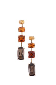 A pair of citrine and smoky quartz earrings