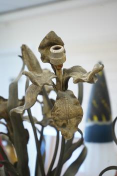 Lot 1558 , A pair of cold painted bronze floral lamps with painted cast iron campagna urns, 76cm high