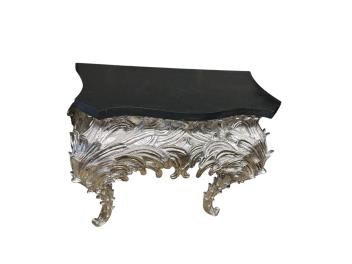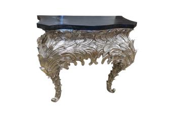 Lot 1069 , A pair of contemporary silvered composition serpentine "Angel Wing" console tables, width 96cm, depth 40cm, height 82cm