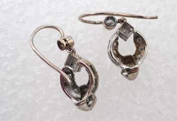 A pair of diamond earrings, mid 20th century and later, each of buckle design in the Art Deco style, set with circular-cut and single-cut diamonds totalling approximately 0.30 carats, length 2.6cm each, hook fittings