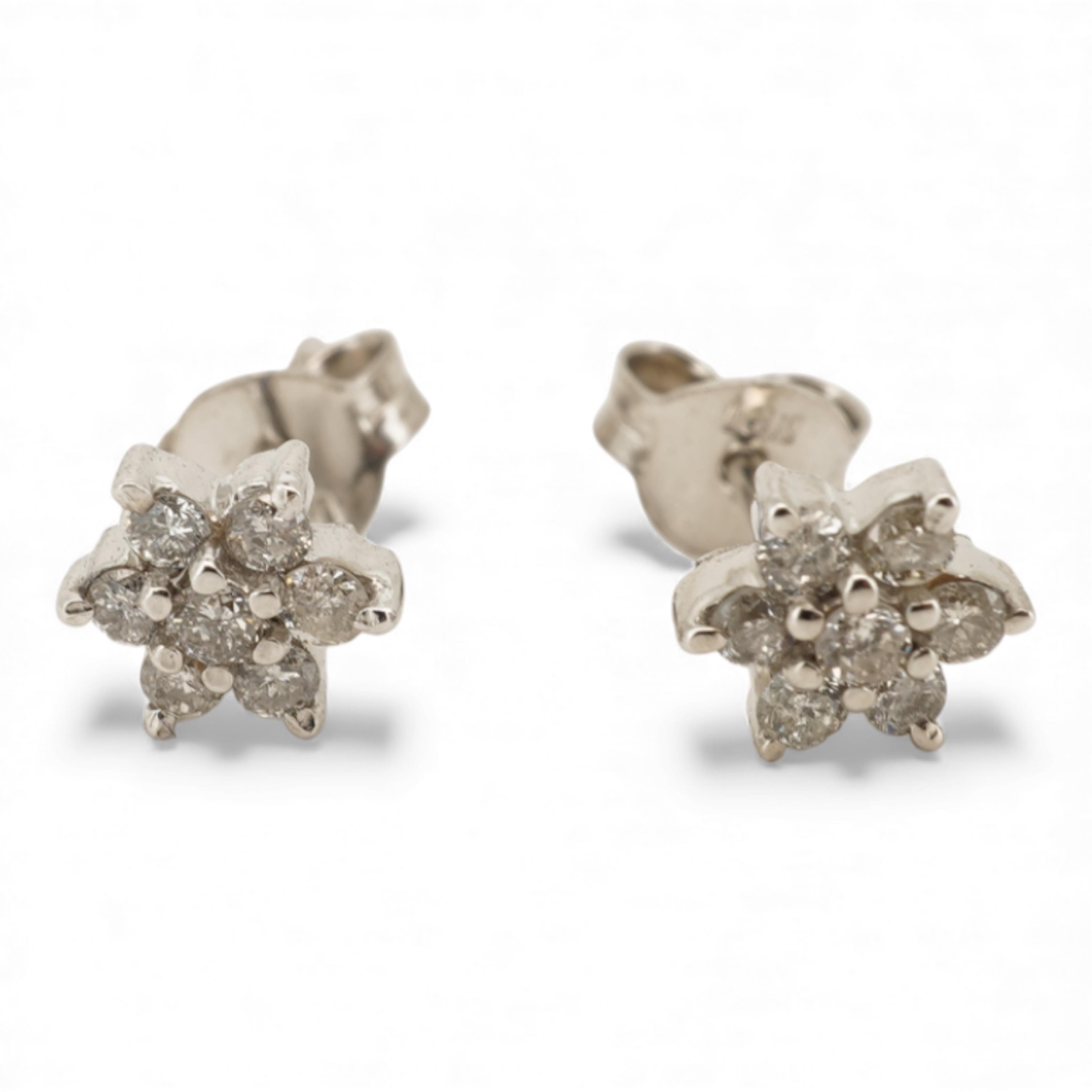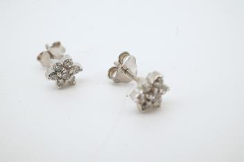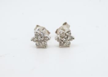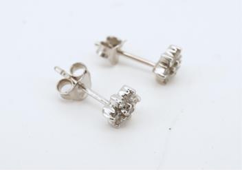 Lot 1928 , A pair of diamond stud earrings, each designed as a small cluster of brilliant-cut diamonds, totalling approximately 0.25 carats, mounted in white gold, diameter 6mm each, post fittings, stamped 18K 0.125