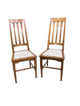 Lot 1064 , A pair of early 20th century Liberty style oak dining chairs, height 106cm