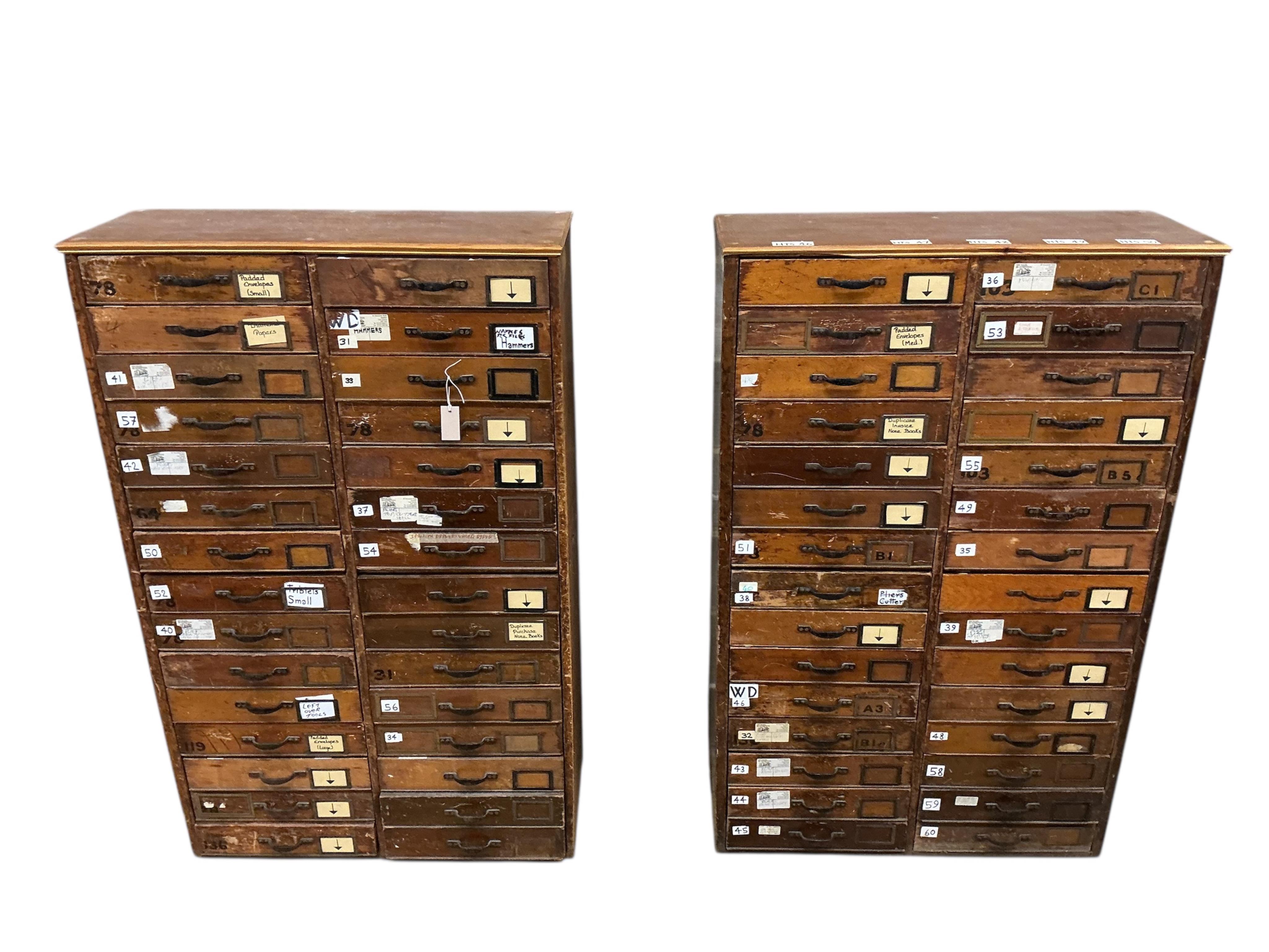 Lot 1215 , A pair of early 20th century thirty-drawer deal cabinets, width 94cm, depth 37cm, height 148cm