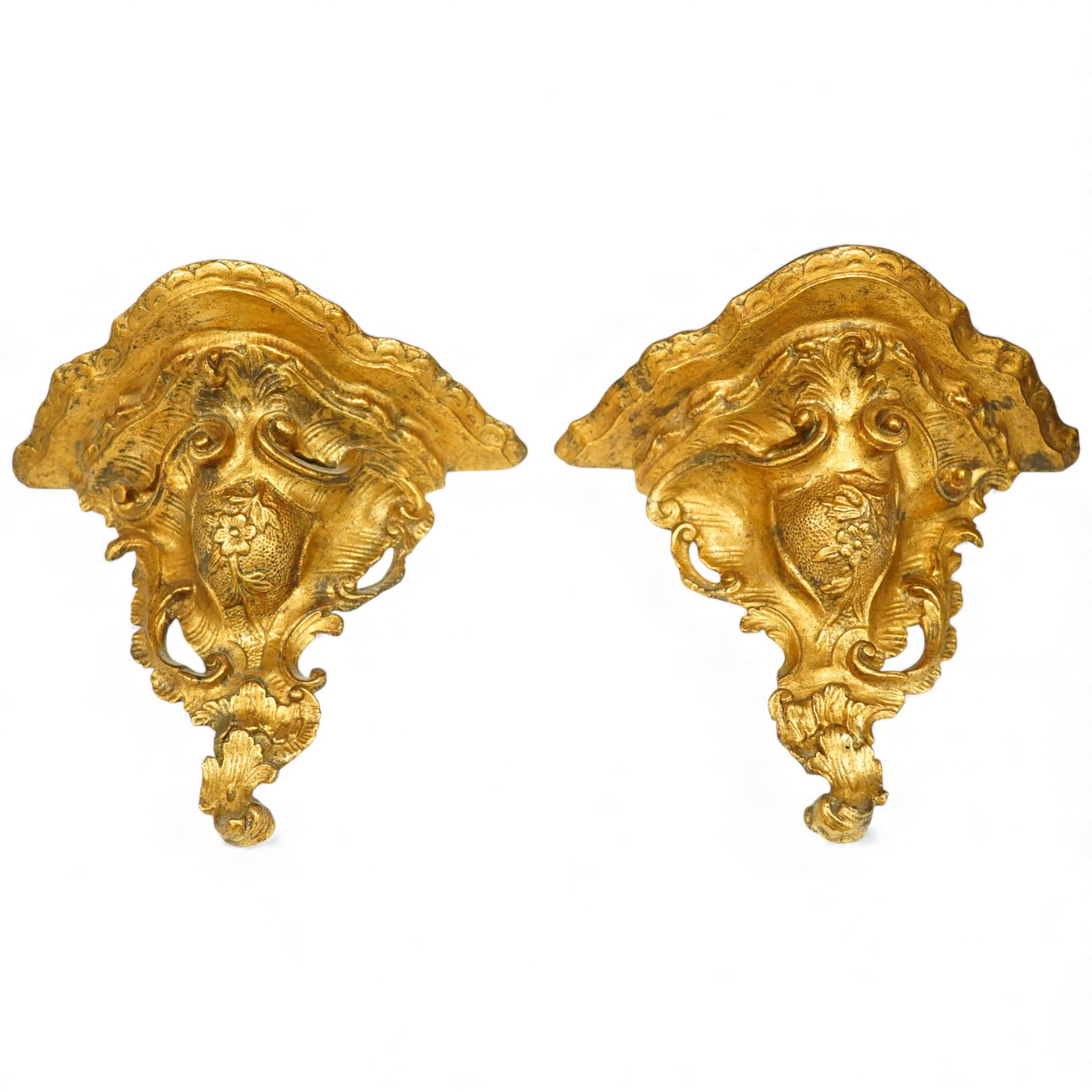 Lot 1277 , A pair of giltwood wall brackets, width 27.5cm, height 23.5cm