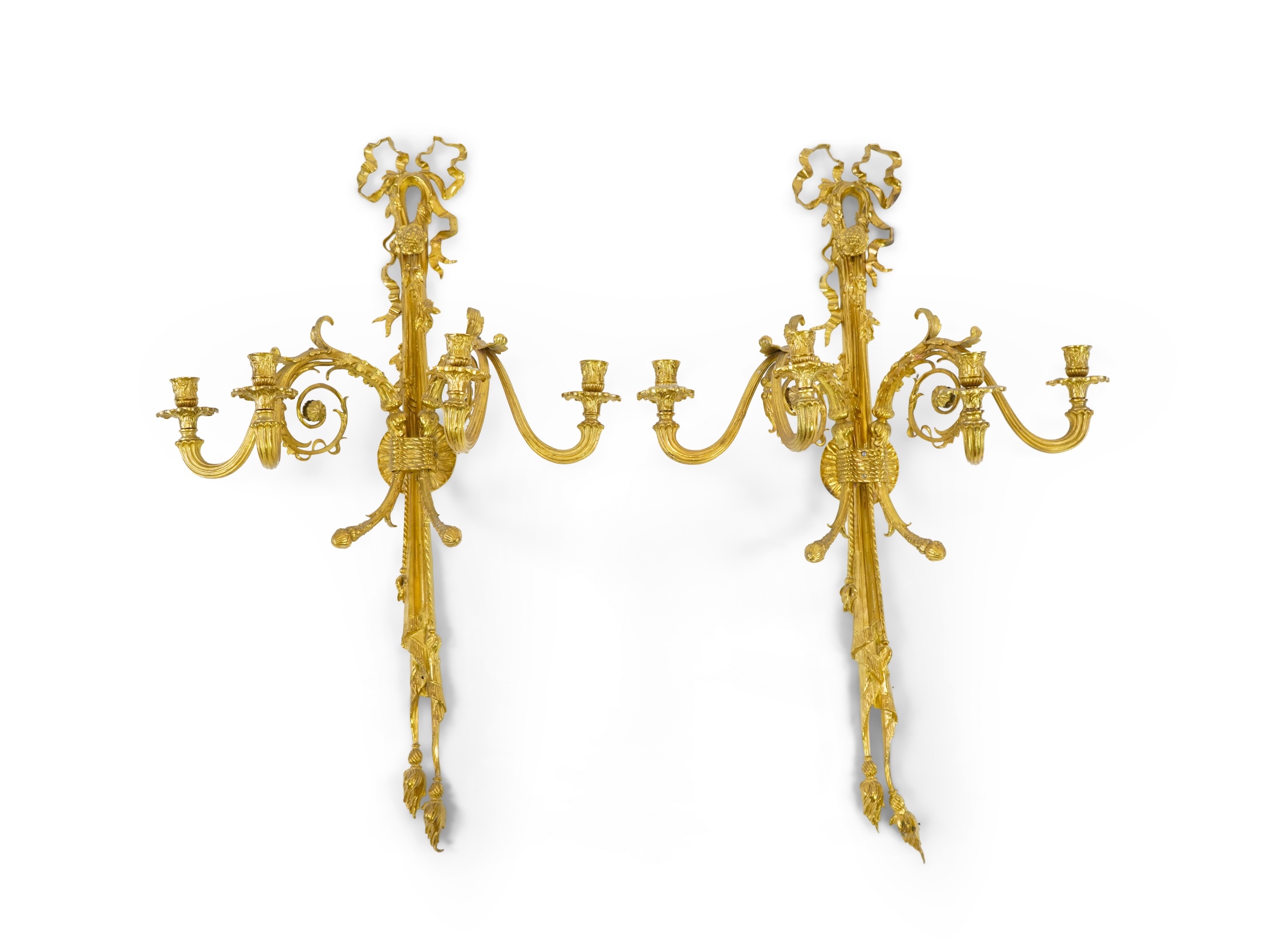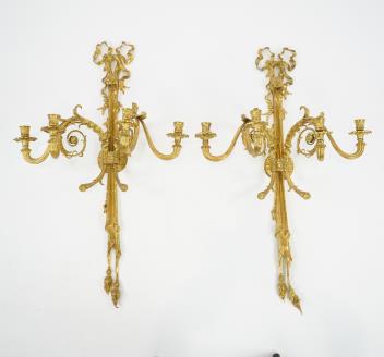 Lot 269 , A pair of large Louis XVI style ormolu four branch wall sconces