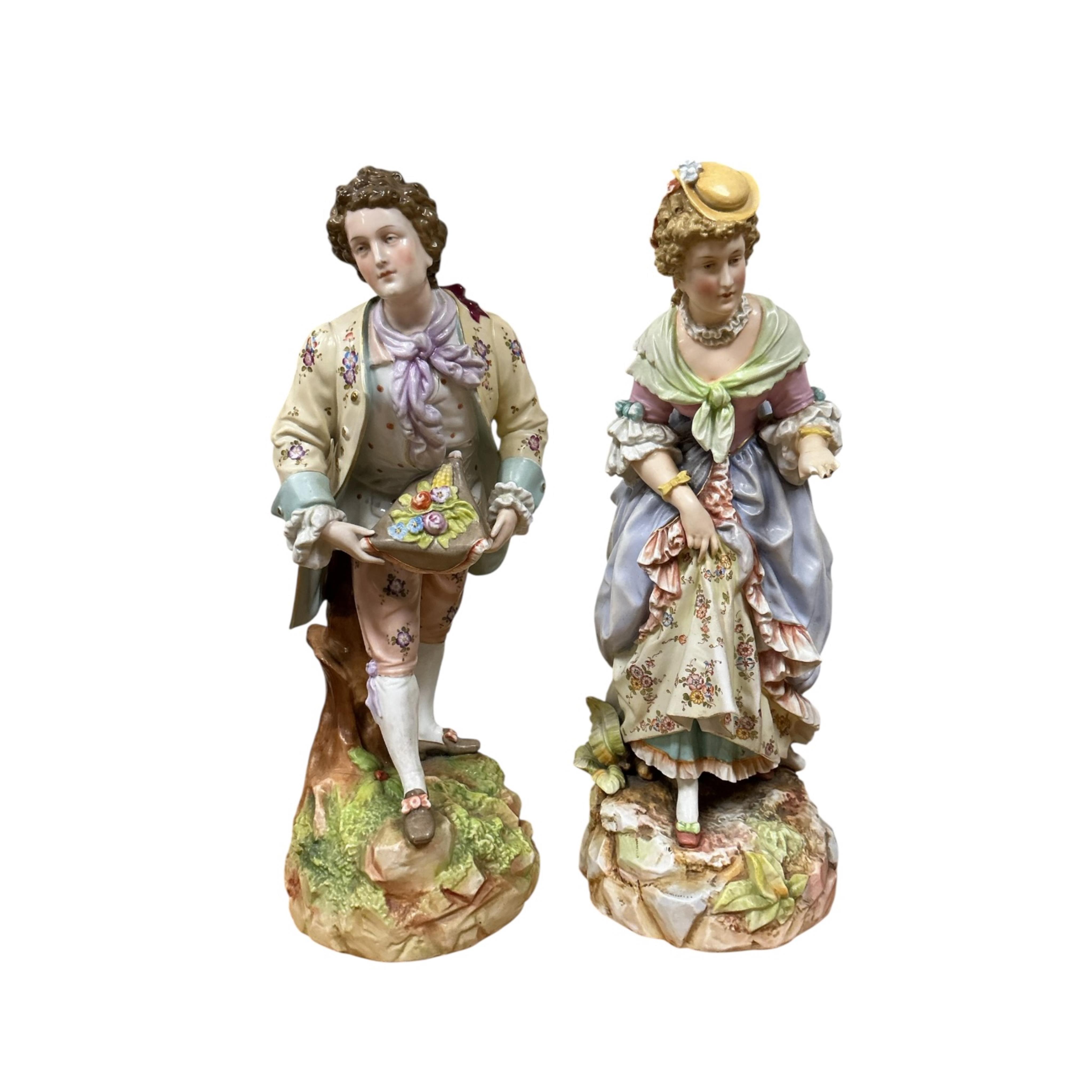 A pair of large Volkstedt porcelain figures, gallant and female companion, 40cm