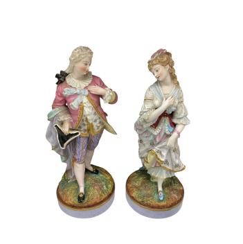 Lot 1267 , A pair of late 19th century French bisque porcelain figures, impressed mark AM - 37cm high