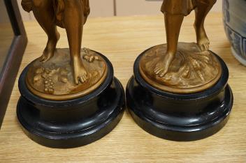A pair of late 19th century gold-painted spelter figures, 48cm