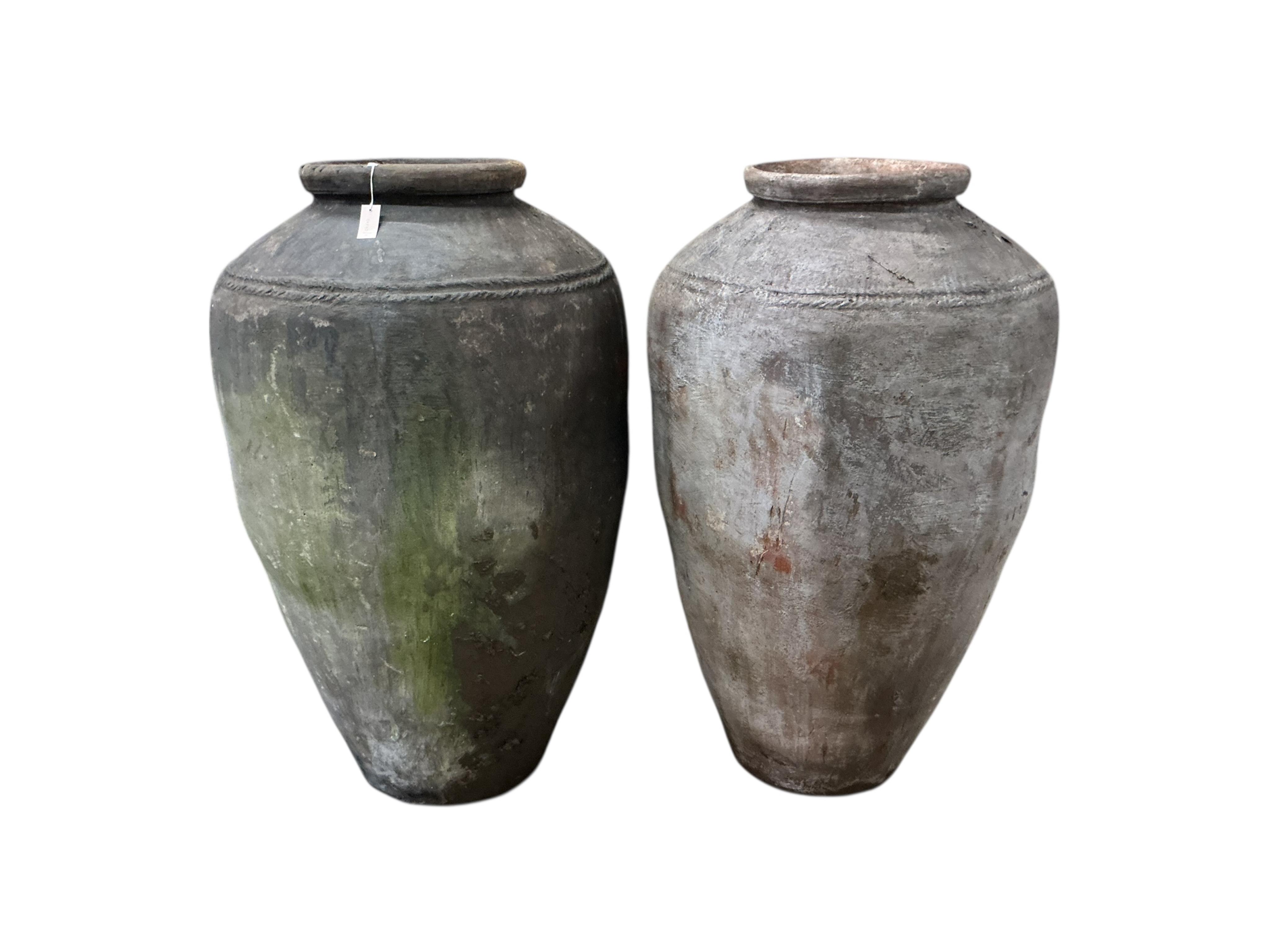 A pair of massive clay and composition jars, height 140cm