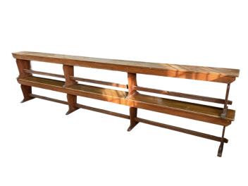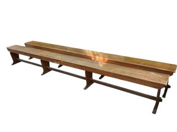 Lot 1013 , A pair of oak school benches from Kings College, Cambridge, width 366cm, depth 28cm, height 47cm