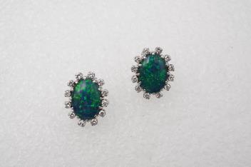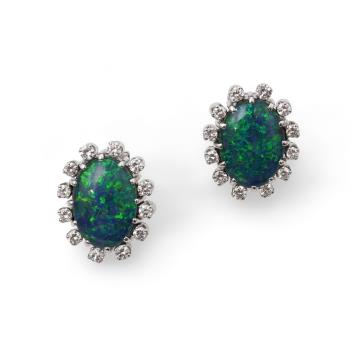 Lot 276 , A pair of opal triplet and diamond earrings