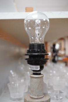 Lot 1311 , A pair of painted and carved wood lamps, 65cm to wood top