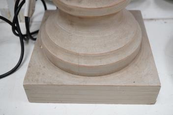 A pair of painted and carved wood lamps, 65cm to wood top