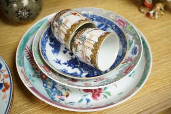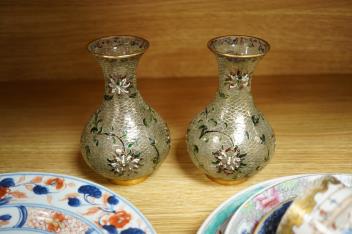 Lot 378 , A pair of plique au jour Chinese vases together with a collection of Chinese export plates and dishes, largest 22cm in diameter