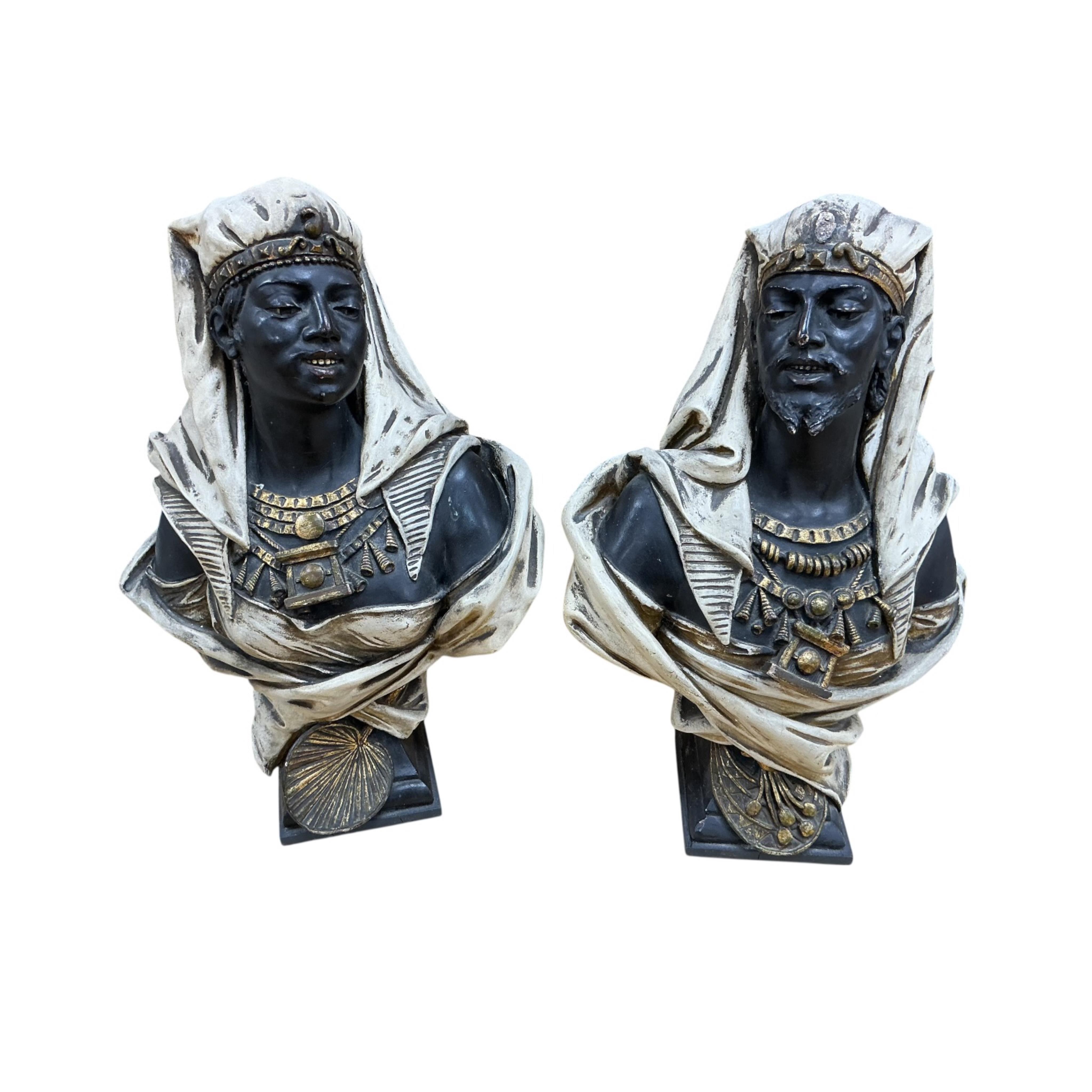 A pair of pottery Blackamoor busts, 44cm high