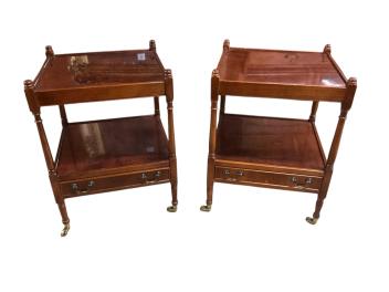 Lot 1038 , A pair of reproduction George III style yew two tier lamp tables, width 46cm, depth 46cm, height 63cm