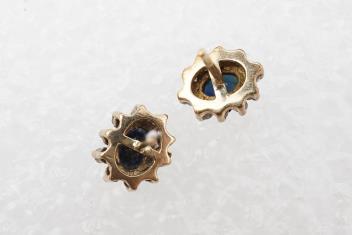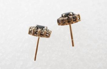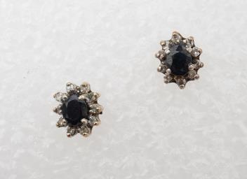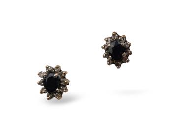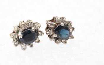 Lot 2984 , A pair of sapphire and diamond stud earrings, of cluster design, mounted in gold, length 0.9cm each