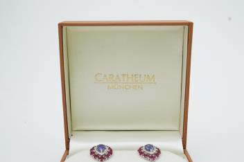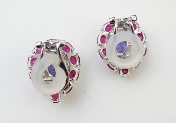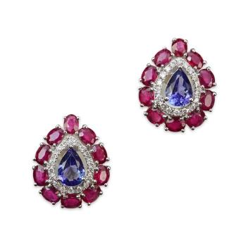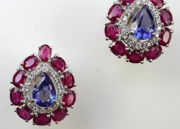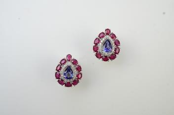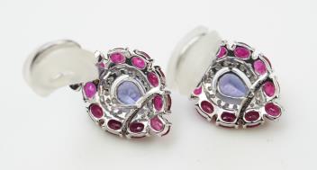 Lot 552 , A pair of tanzanite, ruby and diamond earrings