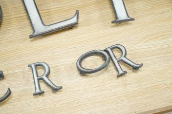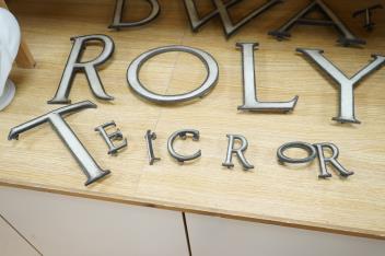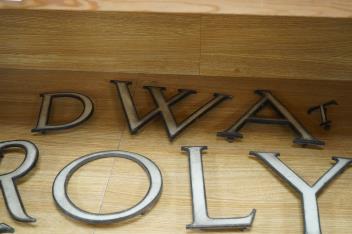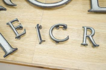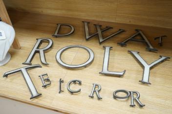 Lot 411 , A part set of fifteen enamelled brass letters, largest 23cm