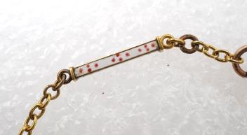 Clasp possibly a replacement. Two links replaced. Enamel in good condition.