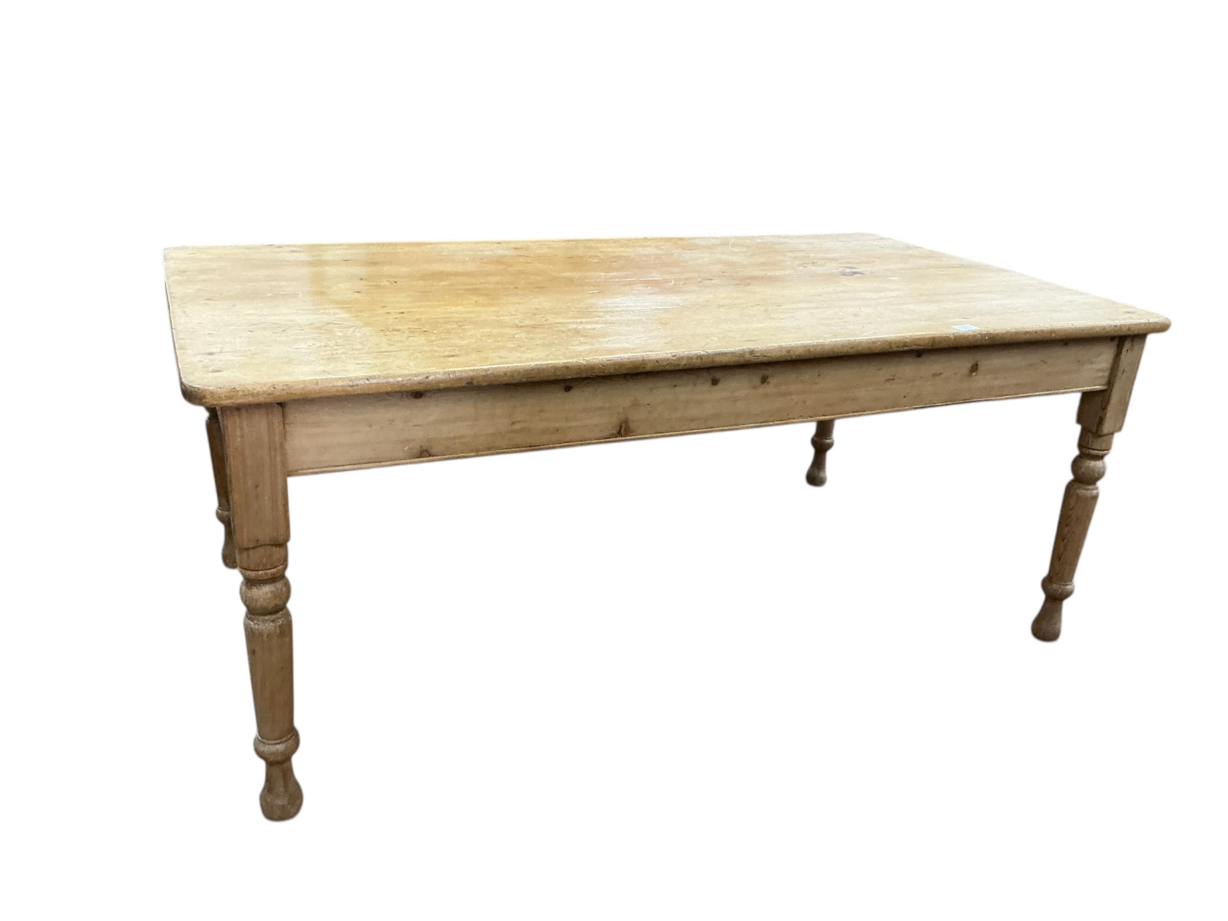 Lot 271 , A pine kitchen table, width 180cm, depth 103cm, height 76cm together with six chairs
