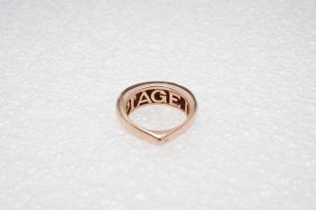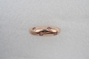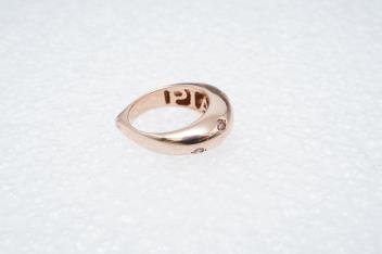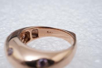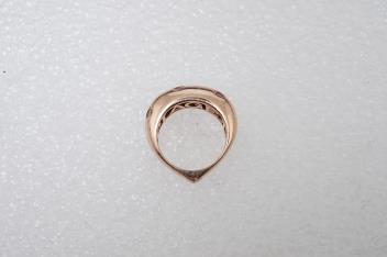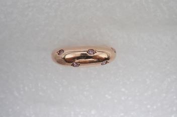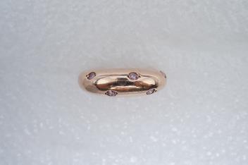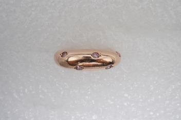 A pink tourmaline ring, of bombé design, accented with rubover-set pink tourmalines, to a pointed shank, the interior band with openwork reading 'Piaget', size L1/2, stamped 585, gross weight approximately 6.5 grams
