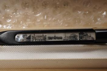 A propelling pencil inset with pictures of famous buildings in Waterman box