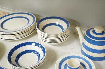 Lot 1310 , A quantity of assorted 'Cornish' blue and white to include Swinnerton Somerset Blue Ironstone and Staffordshire Chef ware, largest 26cm in diameter