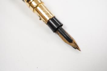 A rare Mabie Todd & Co. gold filled filigree chatelaine eye-dropper with flexible nib with over- and-under feed